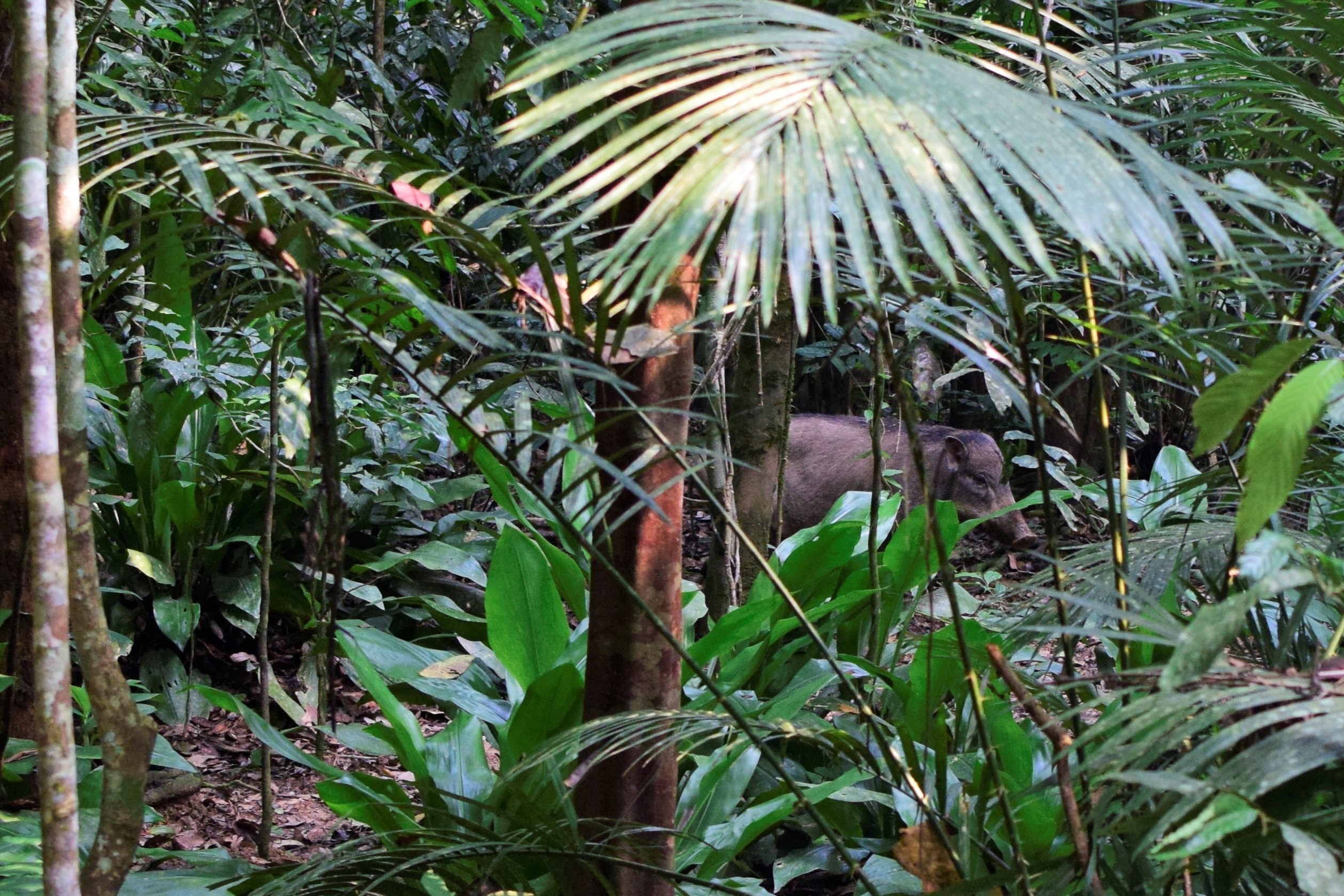 After 20 minutes walking a saw a rustling branch low to the ground and the first second I spent thinking it was a squirrel before my mind kicked in and said “wait, it might be something else”. I paused and after another second a boar as big as a big dog walked out from behind the foliage, a few seconds later a few small boars trotted past. I was surprised, I had heard they were very difficult to see. And maybe they are.